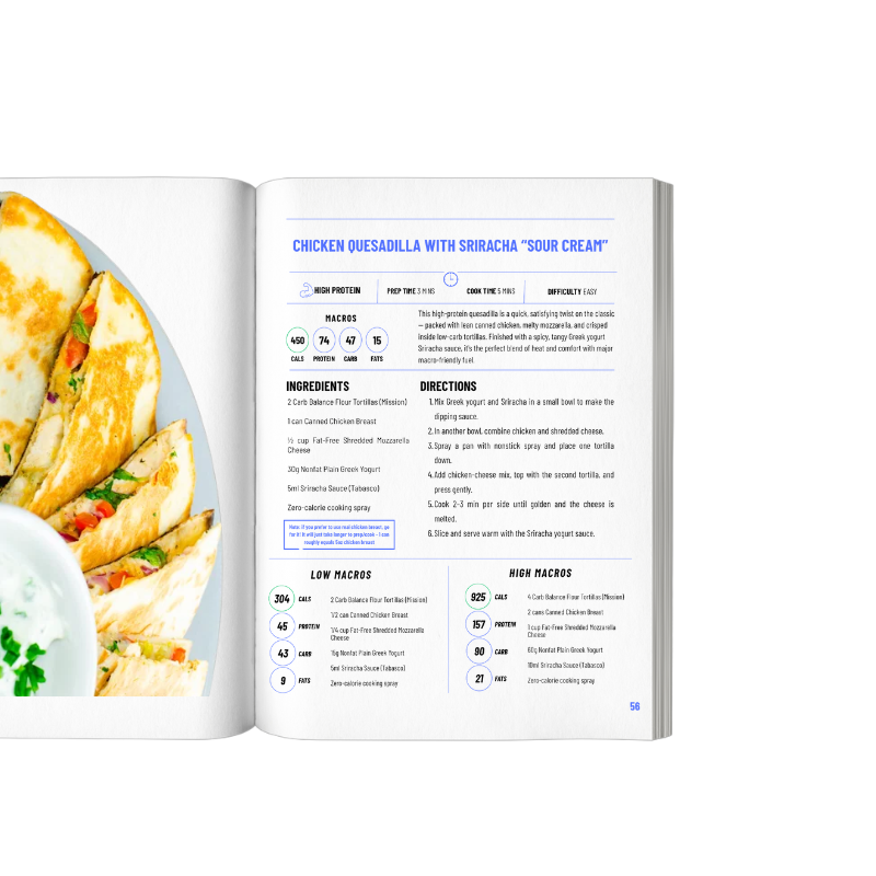 80+ macro-friendly recipes, each with 3 calorie options (low, normal, high) plus the complete Fat Loss Blueprint.